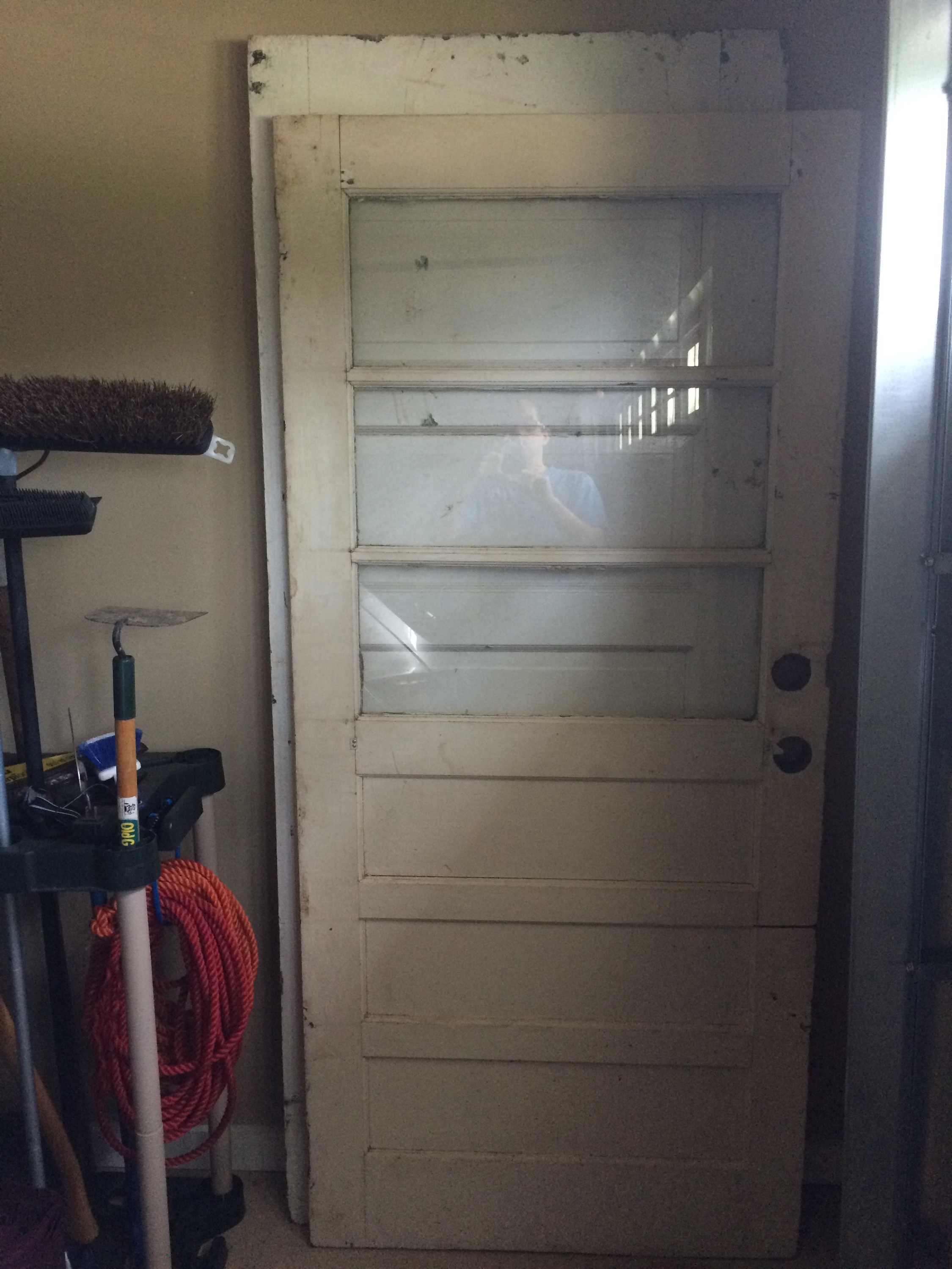 In the meantime, these are the old doors we bought. The solid one is from the Dauphin Island Officers Club and will go in the front bedroom/office. The second door, with the glass, will go on the garage exit.