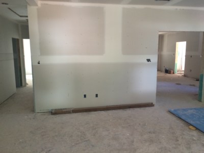 The Sheetrock is up! We have rooms! Yesterday, June 18, the crew started taping and coating.