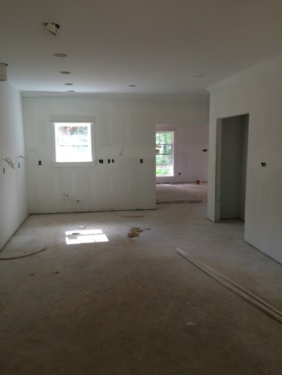 From the kitchen looking southeast. Donnie the trim guy will be back this week to finish the trim work, hang the custom doors, and install door levers.