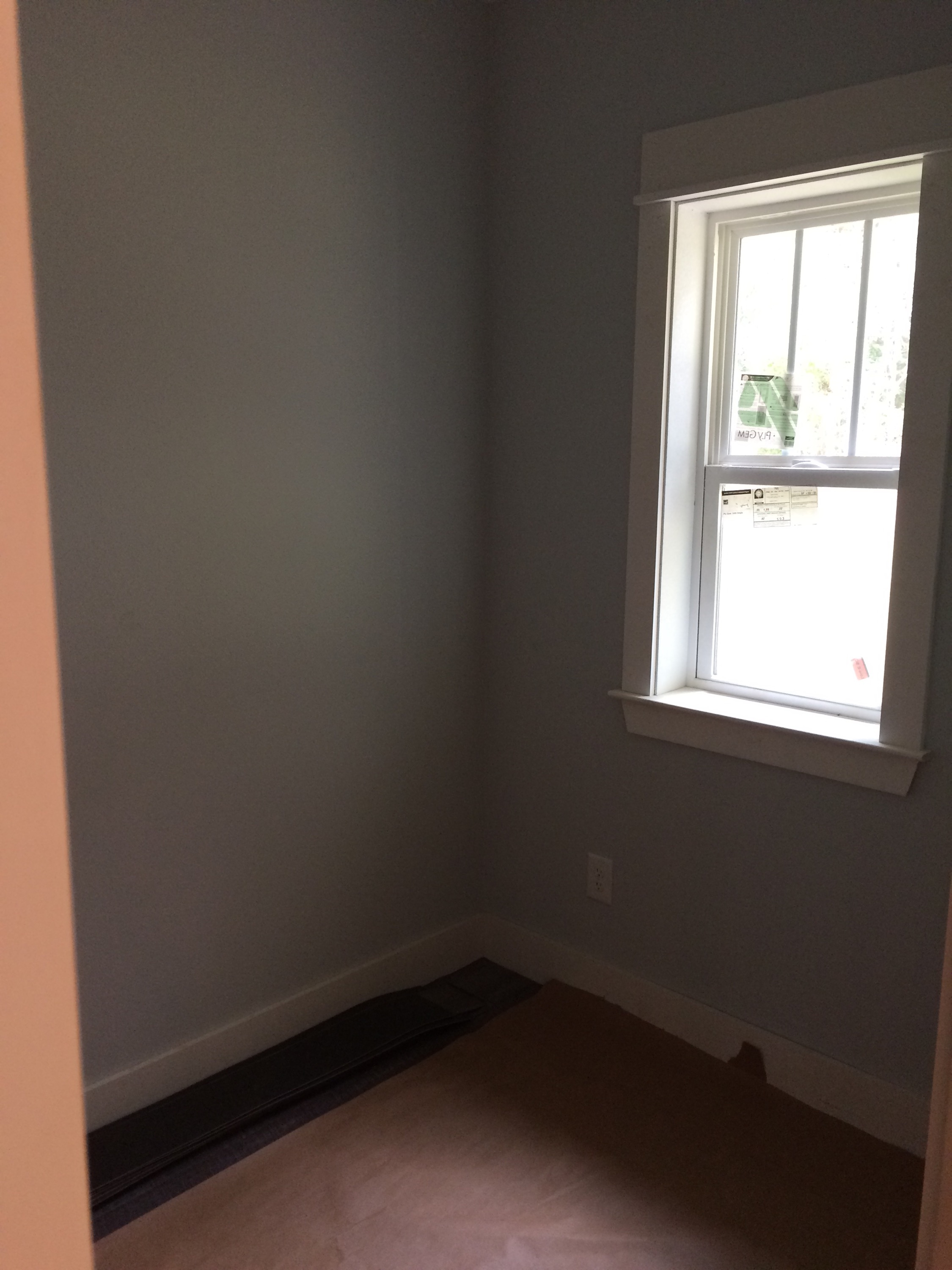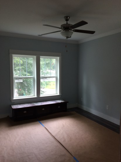 The trimmed out front bedroom window. Window seat will be added later.