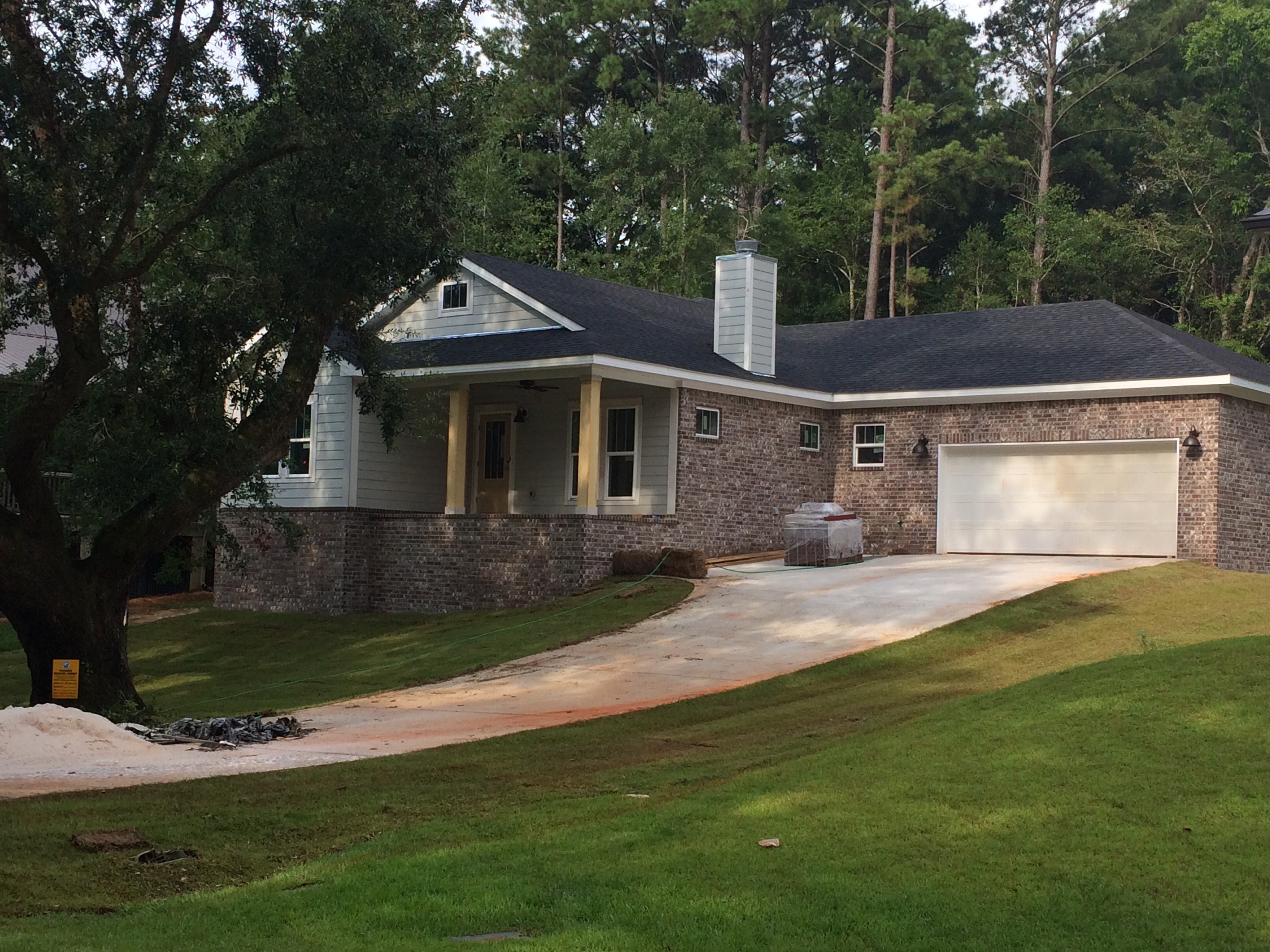The sod was rolled out Thursday. The front of the house is set to be painted this week too.    Icy Lemonade (Sherwin Williams), perfect for late July in Alabama.